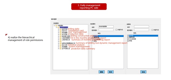 1. Managers at three different levels-Group Headquarters-Project Base-Field Drilling Team can check the production and operation status of drilling team in real time through the Internet without geographical restrictions;