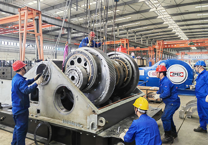 ZM-QP2400五缸泥浆泵属于集团重大科研项目,设计制造难度很大,公司领导高度重视,成立了由技术、工艺、生产、采购等部门组成的项目组。为了有效降低泵体积及重量,同时保证可靠的输出动力,设计上采用四点支撑、超级螺母、分流式齿轮传动、分体式墙板等一系列创新技术。项目领导对泥浆泵关键部件的制造和加工多次开会论证,确定施工方案,生产部门安排精兵强将组织生产,各部门精诚团结,共同推进项目进度。在项目实施期间,集团领导多次到现场察看生产进度,和项目人员一起协调解决生产过程中的困难,使得首台QP 2400五缸泥浆泵各项工作得以顺利完成。