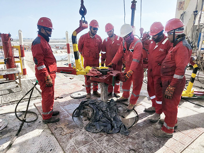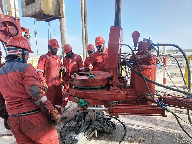 在每天的班前会上,中曼22队关键性岗位人员都会轮流向大家分享事故案例,分析注意事项,避免类似事故的发生;在设备操作方面,带班队长和各路大班持续对班组新成员进行B型钳和液压大钳的规范操作教学,同时要求各岗位每天加强设备巡检,尤其是在现场特殊作业期间,安全人员和相关负责人必须严格执行现场全程监督和指导。