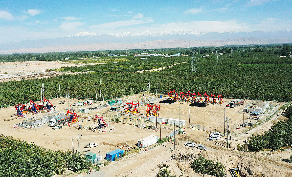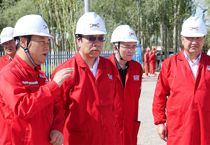在中曼阿克苏油田温7区块温7采油井站,李雪松详细介绍了中曼集团及阿克苏中曼油气公司的发展及集团一体化优势、温宿区块基本情况、温7区块产能建设项目等。