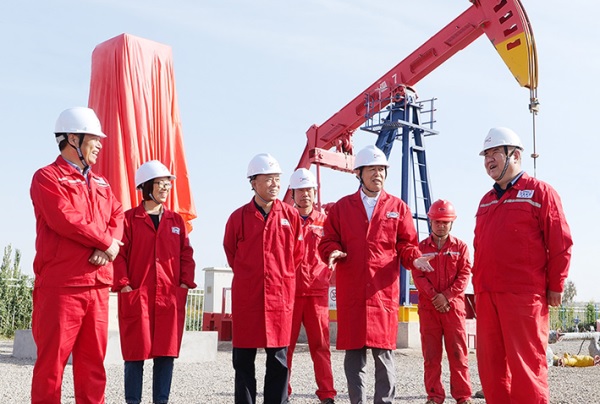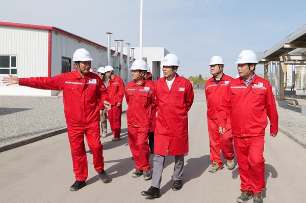 在中曼石油温北联合站,一眼望去,4座5000立方米的原油储罐、6座水罐拔地而起,一条条纵横的管线交错延伸,场面宏伟壮观。董事长前往中控室、化验室、项目现场等地,仔细查看温北联合站监控系统、基础设施建设、仪器设备等情况,他表示,油田数字化建设很重要,要加强联合站工作人员培训,提高生产管理效率、经营管理水平、过程管控能力,同时要持续增强工作前瞻性,深入研究联合站二期建设等工作,加快推动阿克苏油田油气上产步伐。