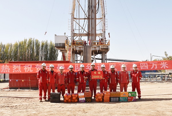 11月1日12时30分,中曼4队在新疆阿克苏油田承钻的红76-4井钻进至井深2054米时,年累计进尺突破4万米大关,成为今年钻井公司首个进尺上4万米大关的队伍。