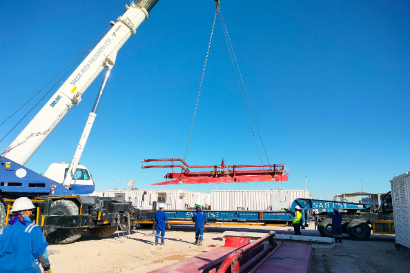 近日,中曼43队在沙特SHAYBAH油区以用时不到9天的佳绩,完成1158.9公里的长途搬迁、安装,第一时间实现了SHAD-801井的开钻,安全、高效地组织作业受到甲方的高度肯定。