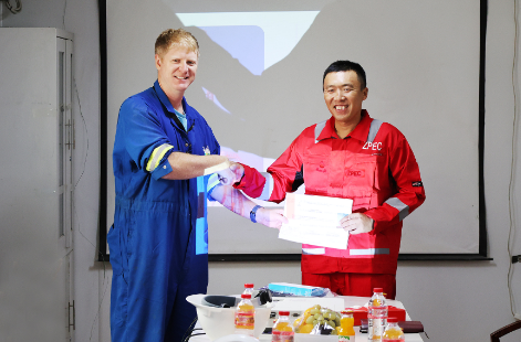 表彰会上,BP钻井经理DAN向朱怀亮颁发了证书和奖品,朱怀亮表示:自己只是中曼普普通通的一名员工,按照公司的要求做了自己份内的工作,感谢公司的多年培养和领导同事的协助。中曼还有很多优秀的同事,我们会一起继续努力,和伊拉克公司共同成长。