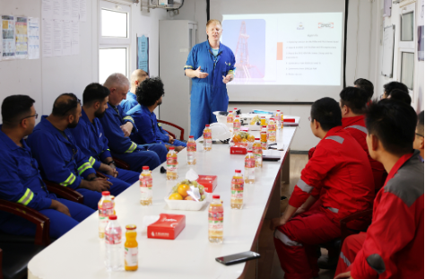 伊拉克分公司总经理张驰感谢甲方的认可,表示:中曼伊拉克分公司目前有一半的队伍在鲁迈拉油区和BP合作,已经适应了这个油区的高标准要求,目前在伊拉克的高端钻井市场牢牢站稳了脚跟,各项标准尤其是HSE标准提升明显,希望项目广大干部员工向朱怀亮同志学习,在今后的工作中再创佳绩。