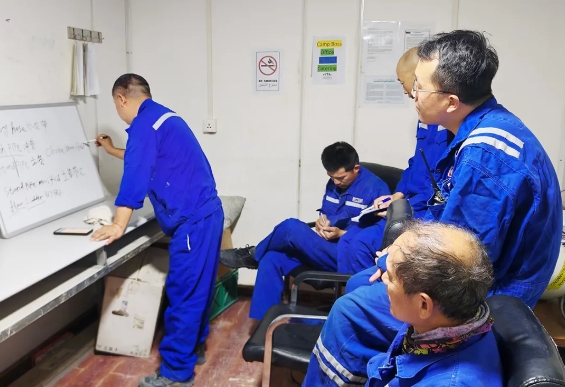 为确保学习活动达到应有的效果,中曼44队根据工作特点,制定了切实可行的学习计划,采取“集中学习+自主学习”相结合的方式进行。集中学习安排在晚班交接后的休息时段,由具备英语基础的员工主讲,分享常用口语、基础词汇及相关行业表达,增强实用性。与此同时,队伍鼓励职工利用手机应用、复习授课PPT课件等开展自主学习,实现学习内容多样化、学习形式灵活化。